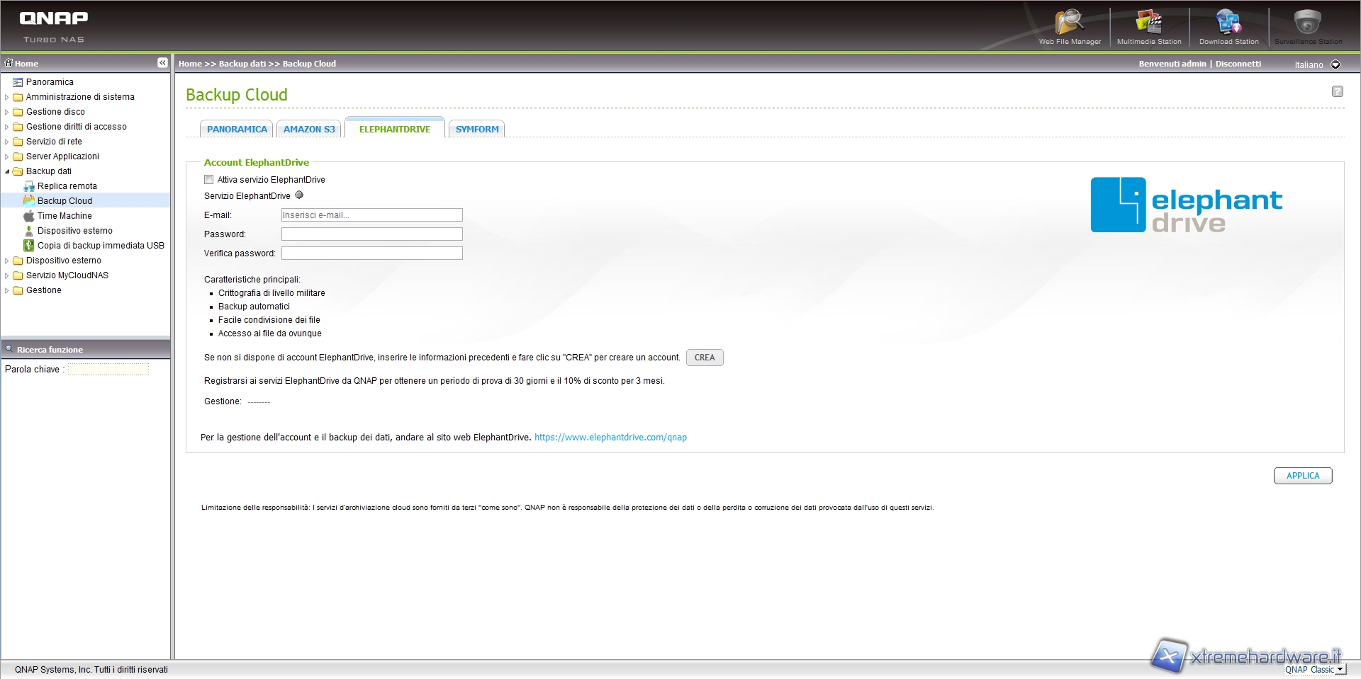 Infatti il QNAP TS-219P II ha la possibilità di sfruttare tre servizi di terzi partner per il backup dei dati.