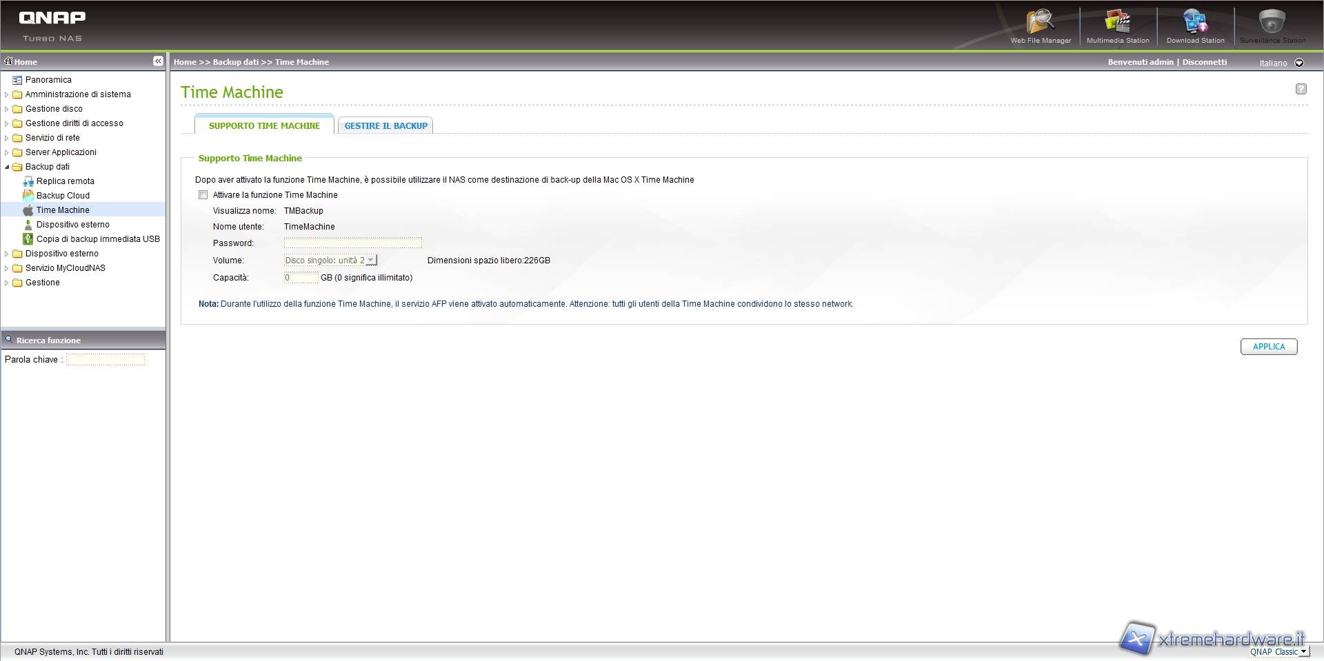 Se abbiamo un Mac con sistema OS X allora la funzione Time Machine potrebbe tornarci utile; è infatti possibile creare un punto di ripristino usando il NAS come destinazione.