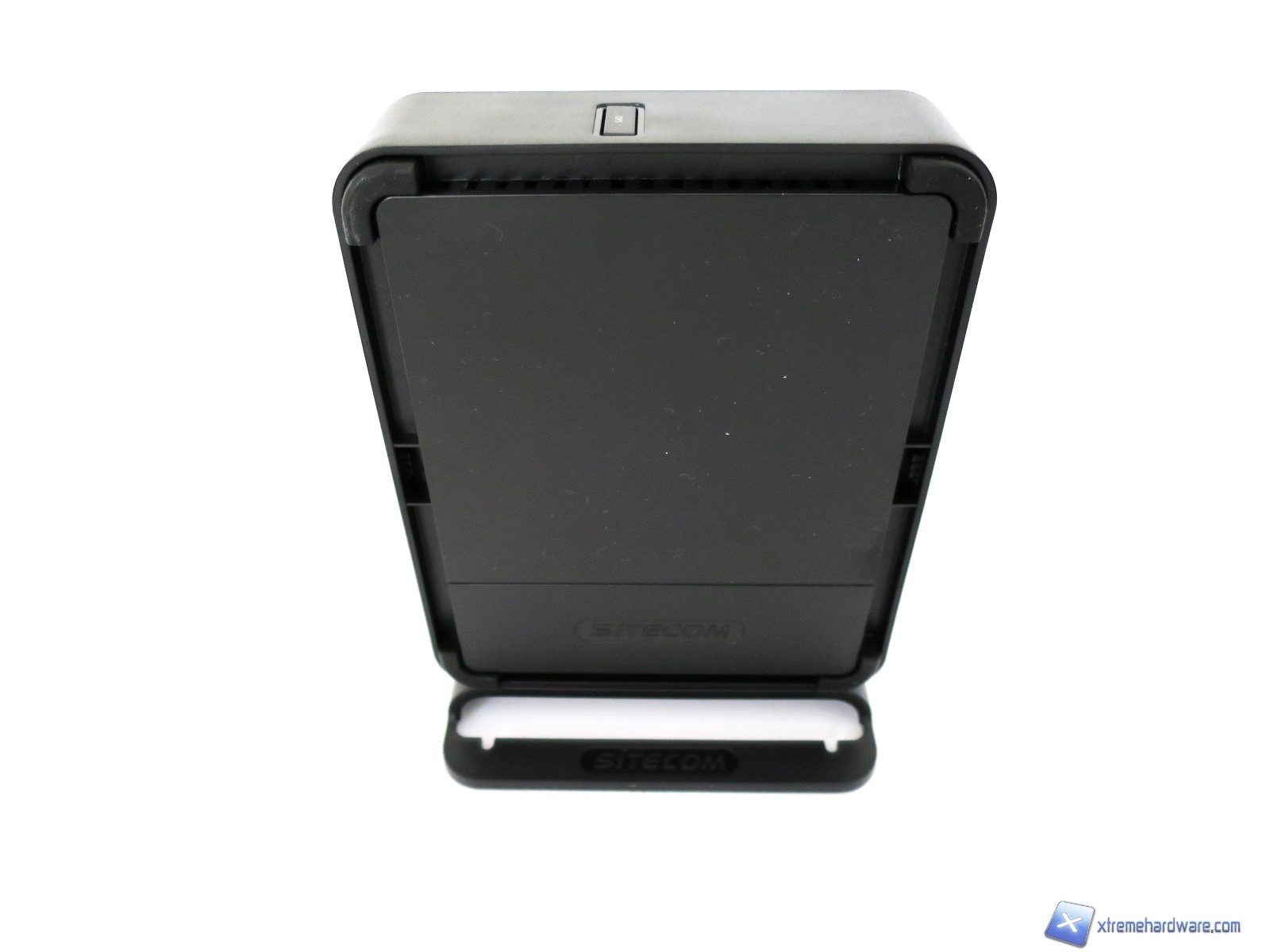 Come abbiamo visto nell’immagine del bundle, il Sitecom WLM-2600 è dotato di un piedistallo/supporto in plastica per permettere il posizionamento verticale del modem/router. Realizzato in plastica nera, dello stesso colore del modem/router, ha anch’esso riportati il logo del brand su ambo i lati. Le dimensioni del prodotto inserito sulla base risultano comunque compatte e non superano un’altezza complessiva di 16 centimetri, infatti, basti pensare alle dimensioni del solo modem/router che sono di 11 x 14 x 3,5 millimetri.