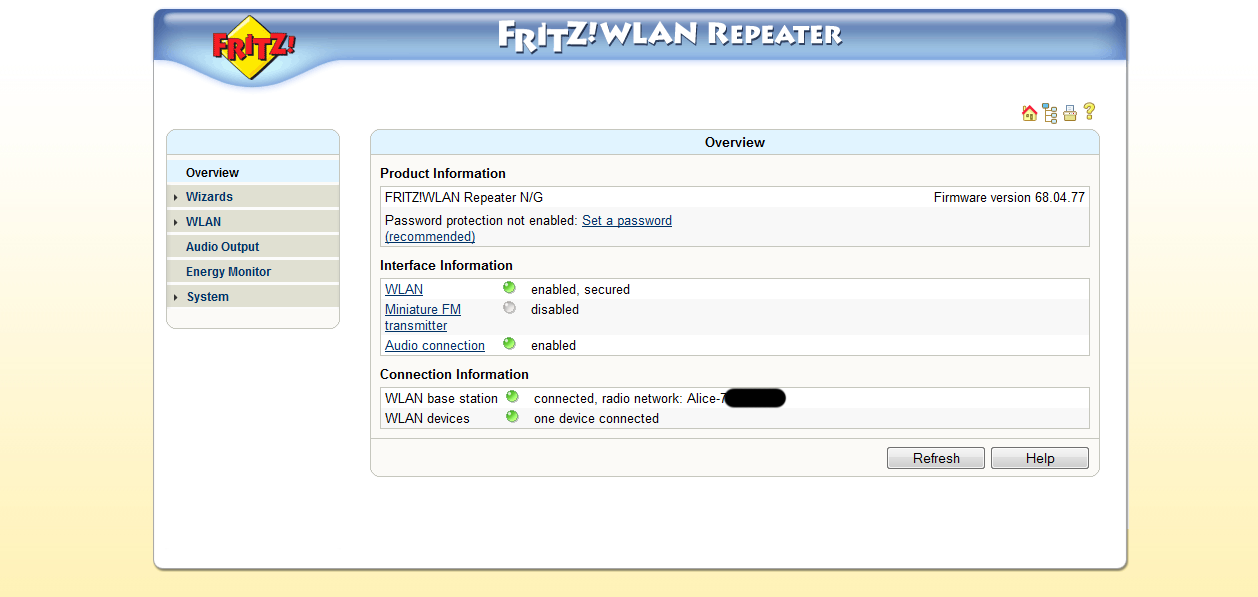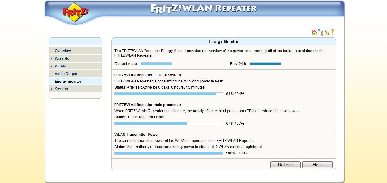 Una volta configurato il Wlan Repeater dal nostro PC, non servirà altro che collegarlo ad una presa elettrica e funzionerà da repeater senza far altro! Naturalmente anche il Fritz!Wlan Repeater ha un pannello di controllo che potremo raggiungerlo digitando l'indirizzo IP del Repeater nel nostro browser. Vi mostriamo le principali schede che chi usa prodotti AVM troverà molto familiari: