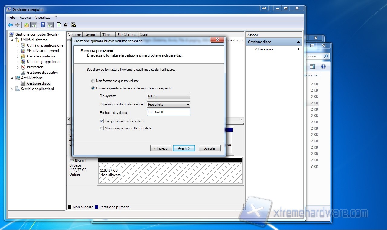 Acceso il computer, durante la fase di boot, ci comparirà una scritta inerente al software di gestione del controller; premendo Ctrl+H potremo impostare i dischi a nostro piacimento.
