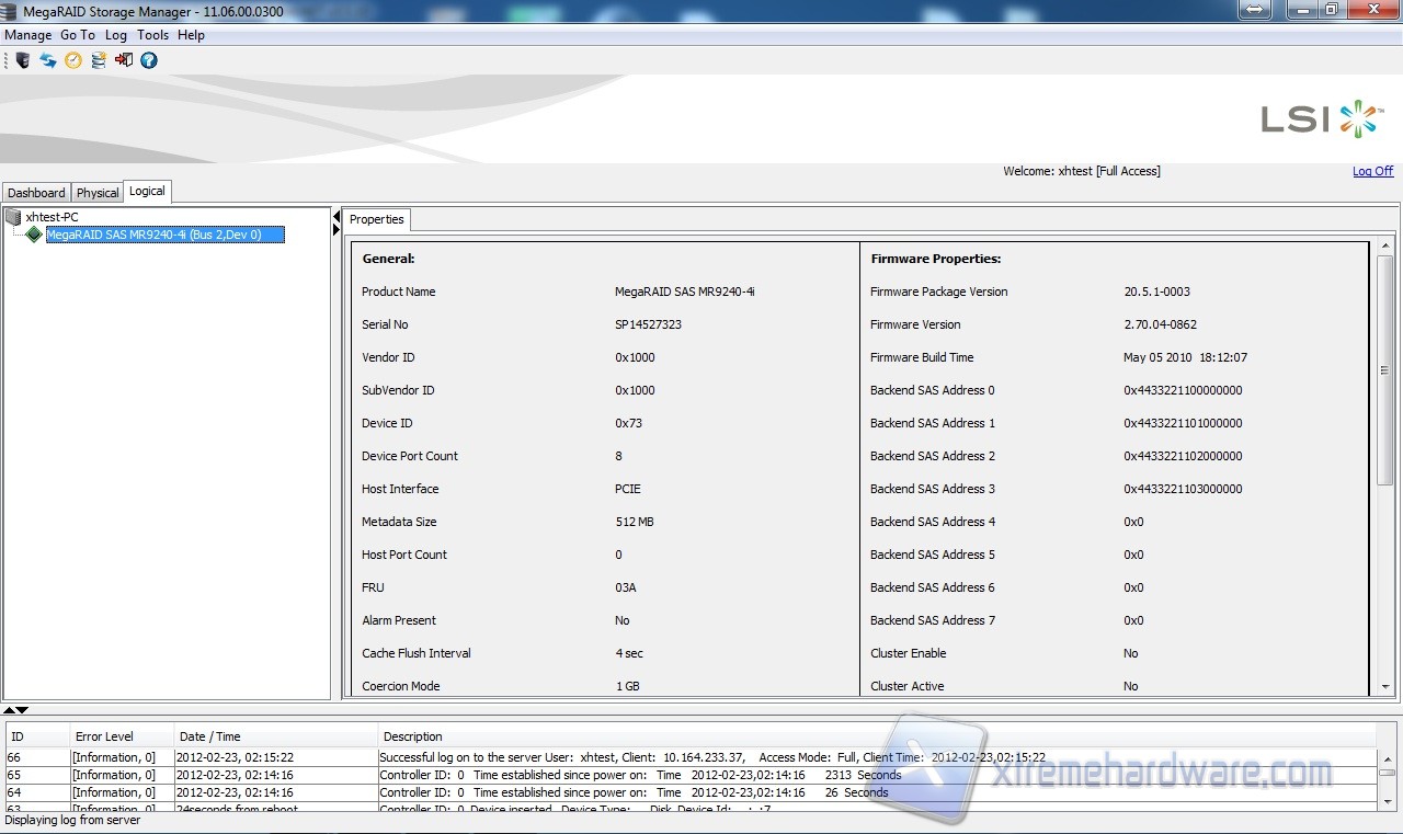 Nel caso in cui il controller venisse successivamente montato all'interno di un altro PC, il webBIOS riconoscerà automaticamente una diversa configurazione dei dischi e richiederà di settarli. Ricordiamo che il controller LSISAS2008 supporta configurazioni in RAID 0, 1,2, 5 e 10.