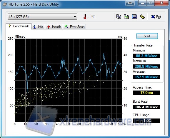 Le performance riscontrate sono elevate ma non abbastanza da superare il controller AMD integrato sulla scheda madre, ricordiamo ancora una volta che il controller LSI è in grado di gestire le periferiche SAS non gestibili dal controller integrato.