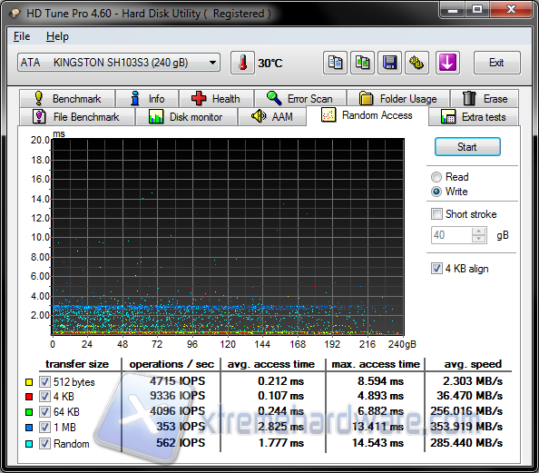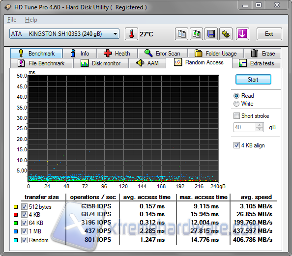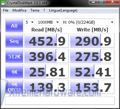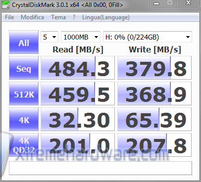 Abbiamo effettuato i test collegando un Kingston HyperX 3K da 240GB al controller LSI 9240-4i per vedere come quest'ultimo si comporta utilizzando una periferica SATA III ad alte prestazioni. Ricordiamo che i controller Intel PCH delle piattaforme LGA 1155 e 2011 sono tra i più veloci finora mai testati. I risultati presentati in questa recensione per il controller Intel integrato sulla Mainboard sono visualizzabili nella seguente recensione: http://www.xtremehardware.com/storage/ssd-solid-state-disk/kingston-hyperx-3k-ssd-240gb-kit-il-top-di-gamma-economico-201205026890/?start=4