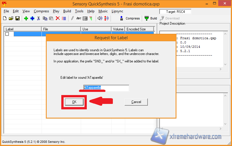 Dopo aver premuto su OK, vi troverete di fronte ad un’ulteriore schermata che vi chiederà di inserire il nome che in seguito ritroverete nella tabella del progetto quindi vi consiglio di inserirne uno che vi faccia riconoscere subito la frase (per esempio ATapparella per la frase “Apertura tapparella in corso”)