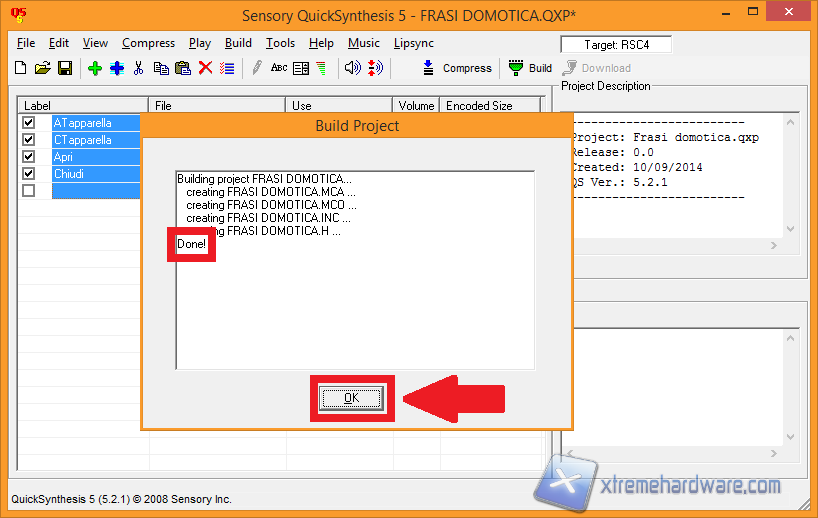 Bene ragazzi, ormai manca poco, dobbiamo solo convertire i nostri file audio in formato mca, il formato che effettivamente il nostro shield riuscirà a leggere. Per fare ciò ci basterà cliccare semplicemente sul tasto “build” e confermare le impostazioni di default.